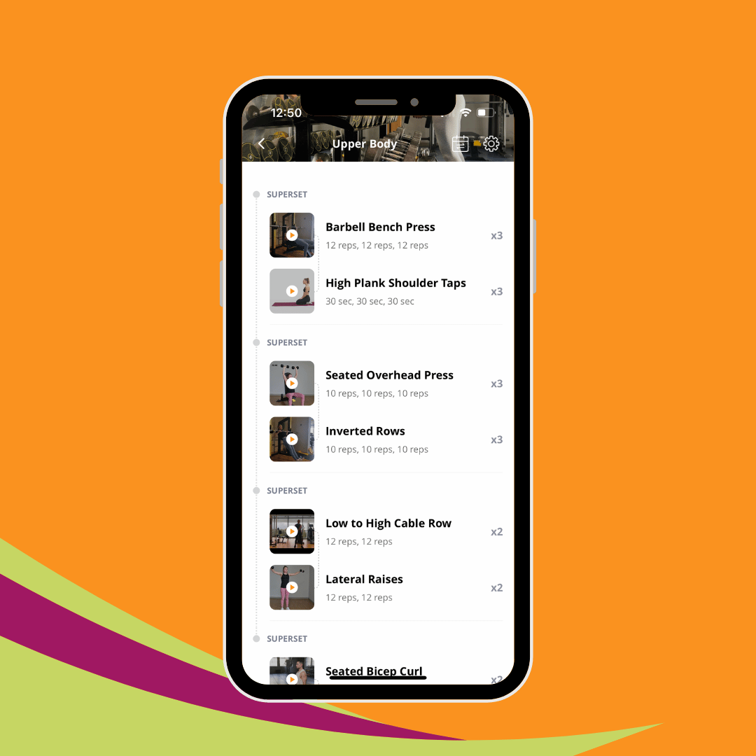 Your strength plan will be ready and waiting for you. Open the app anytime and train with confidence — exact reps, sets, tempo, and demos are all laid out for you.
